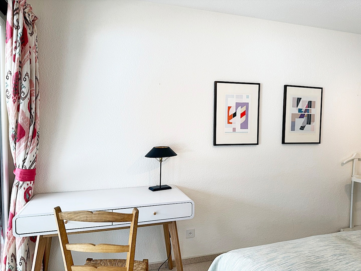 Die Wohnung verfügt über ein helles, geräumiges Hauptschlafzimmer mit einem Doppelbett und einem Balkon. Das zweite Schlafzimmer ist mit einem Doppelbett und einem zusätzlichen Einzelbett ausgestattet.
